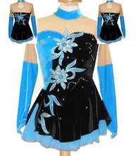 • Lade das Bild in den Galerie-Viewer, Türkis Schwarz  Eiskunstlaufkleid Kürkleid Rollkunstlaufen Tanzkleid Tanzmariechen