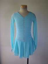 • Lade das Bild in den Galerie-Viewer, Türkis Weiß Eiskunstlaufkleid Kürkleid Rollkunstlaufen Tanzkleid Tanzmariechen