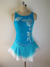 • Lade das Bild in den Galerie-Viewer, Türkis Weiß Eiskunstlaufkleid Kürkleid Rollkunstlaufen Tanzkleid Tanzmariechen